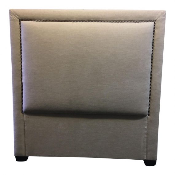 Design Plus Gallery has a new upholstered head board. The piece is upholstered in a Beige Linen with Bronze finish nail head detailing. The look is very clean and crisp!