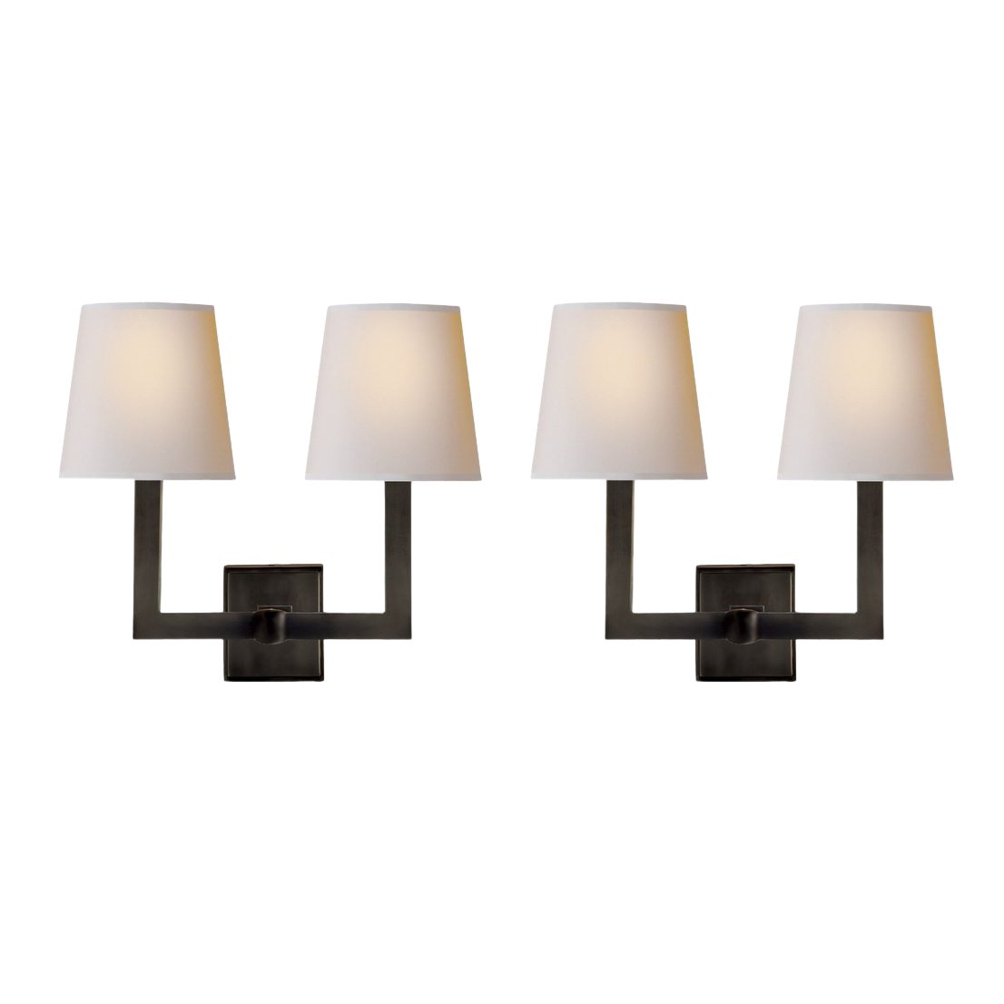Design Plus Gallery presents a a pair of brand new Visual Comfort Wall Sconces by E. F. Chapman. A square tube 2 Light 15 inch Hand-Rubbed iron decorative wall light in with natural paper shades. Straight out of the box.