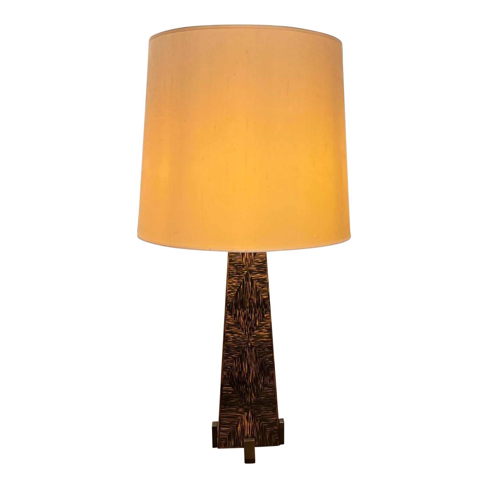 Design Plus Gallery presents a “Thèbes II” Table Lamp by Nicolas Aubagnac. Designed in France in 2013. Reinvigorated the use of vintage techniques, the application of straw marquetry and parchment by applying them in ways, and to forms, unlikely to have existed in the past. Accompanied with a linen drum shade. Signature underneath base. Made in France.