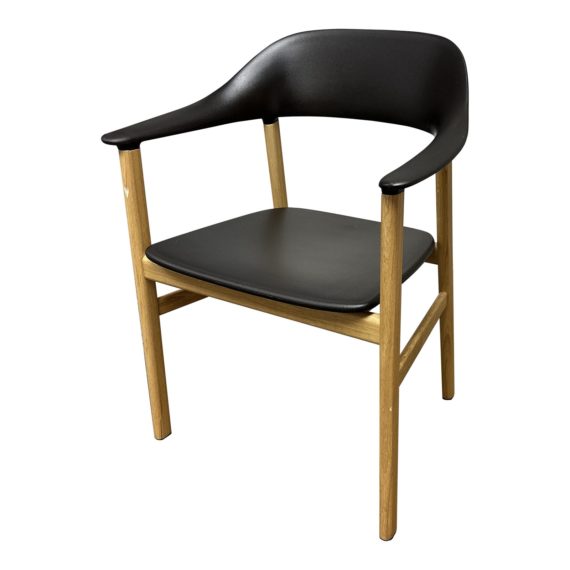 Design Plus Gallery presents the Herit Arm Chair by Normann Copenhagen. Herit combines a solid oak frame with a foam cored black plastic molded seat and back. The chair offers optimum comfort with its ergonomic contours. In sum, it’s a versatile and forward-thinking take on the simple virtues of Nordic style and classic fine craftsmanship. In good condition, this was a Showroom Sample.