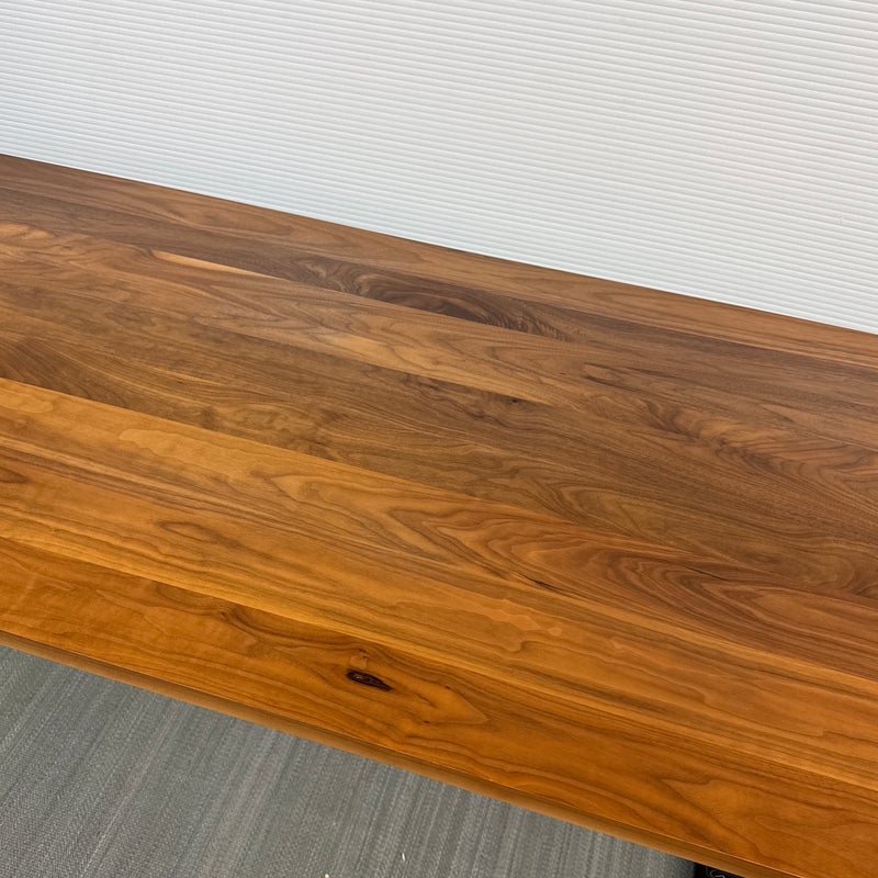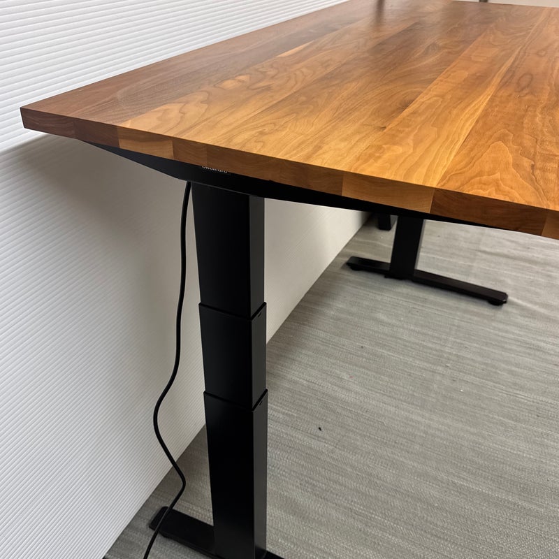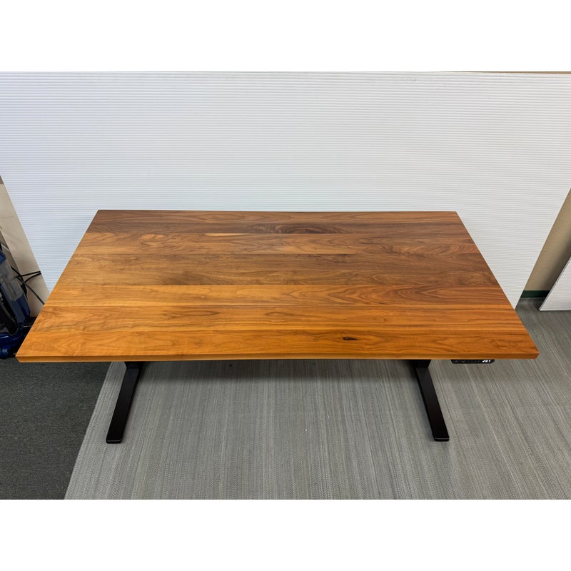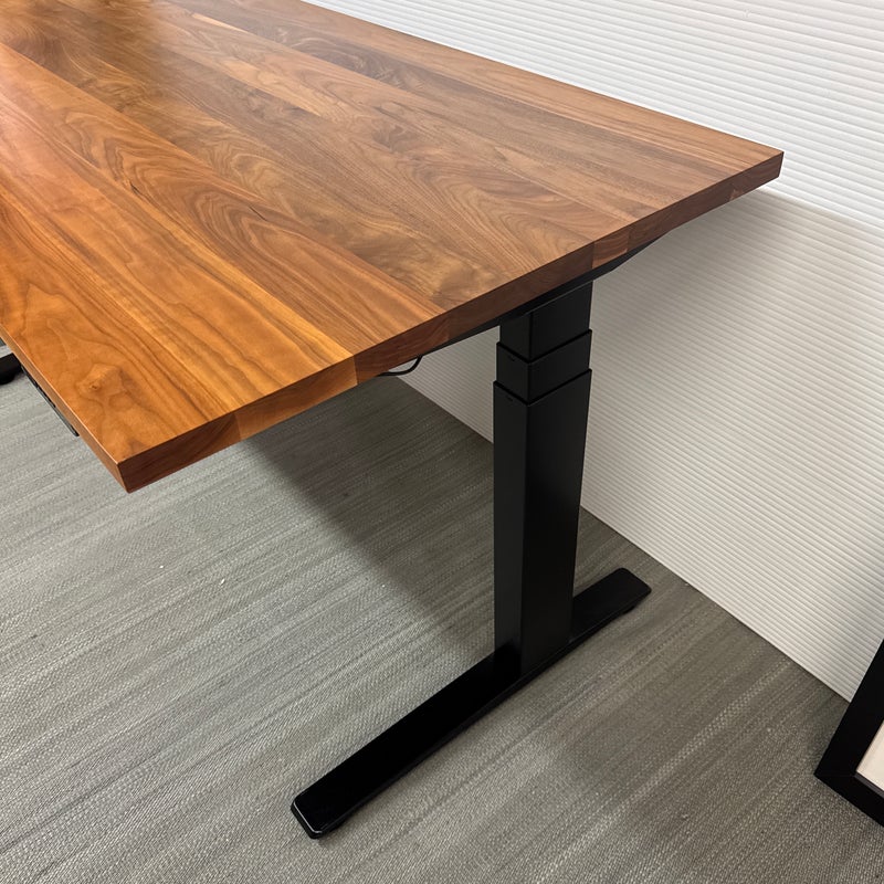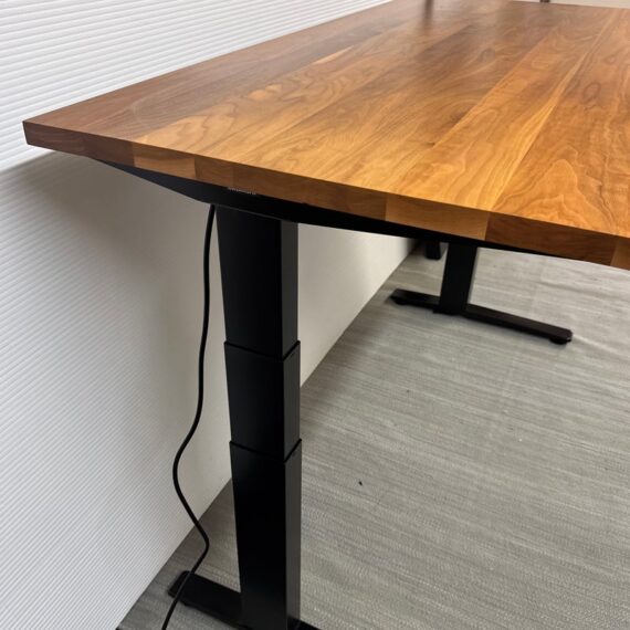 Design Plus Gallery presents the SW Adjustable Height Standing Desk Designed by Okamura for Room & Board. Work standing or work sitting. Having this flexibility is healthy, inspiring and efficient for office workers. No more adapting your work style to the desk, now the desk adapts to your work style. Move the surface of the desk up or down quickly and with ease, creating the optimum positioning for the worker when it’s needed. With full focus on freed movement, comfort, and safety, this flexible SW is a fusion of design and functionality. Customized with a walnut finish table top and blackened steel frame for a desirable presence in your home office or workspace. Is in good condition for its age with minimal surface wear that is consistent with use.