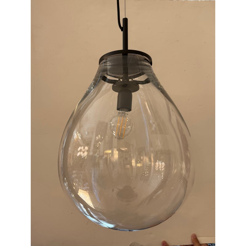 Design Plus Gallery presents a Tim Pendant from Bomma. Designed by Olgoj Chorchoj. A monumental piece that marked Bomma’s entry into the world of top level lighting. A transparent blown glass with aback finish hardware. Embodies of the design of simplicity and glass making mastery. In good condition, minimal wear. Made in the Czech Republic.