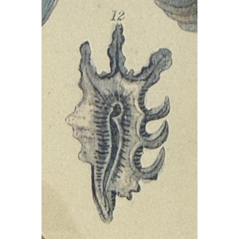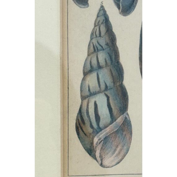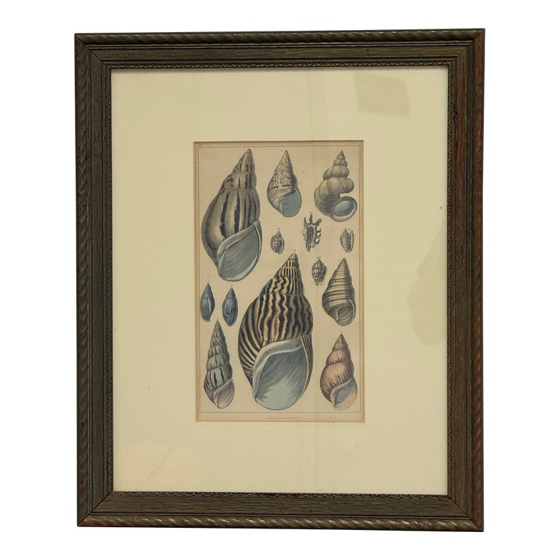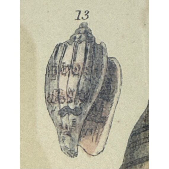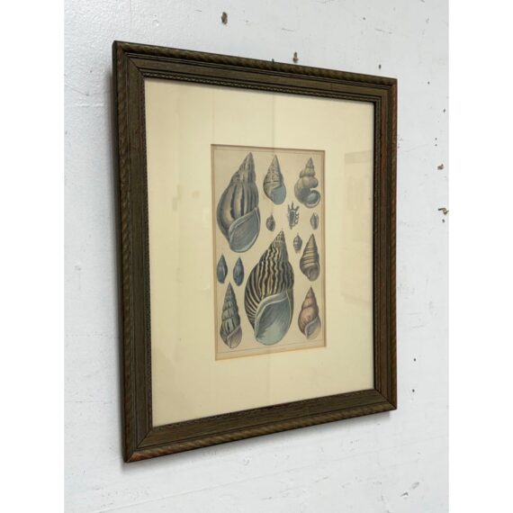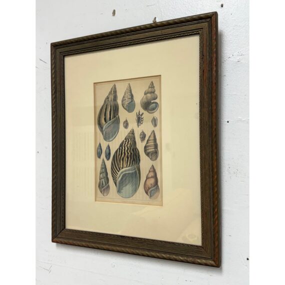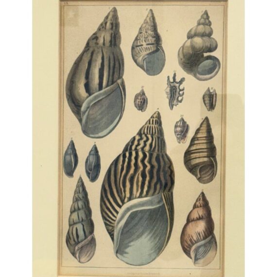 Design Plus Gallery presents Seashells Published for Oliver Goldsmith’s Animated Nature. It’s original was a hand-colored engraving for “A History of the Earth and Animated Nature” by Oliver Goldsmith (1730-1774), published between 1848 and 1852 by A. Fullerton & Company of Edinburgh and London. This plate held the likeness of thirteen seashells as studied by Goldsmith. It is framed in a light weight solid wood frame with distress from age. Overall it is in good condition for its usage.