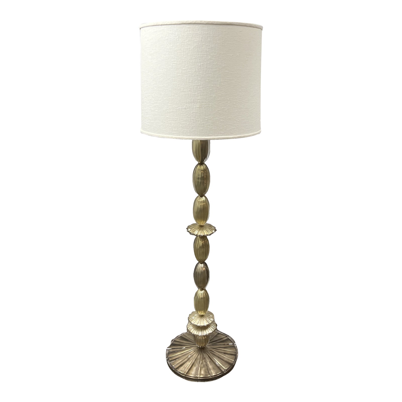 Design Plus Gallery presents a Moulin Floor Lamp by Old Studio. The bases is covered in round rippled resin with a clear silverling finish. Accompanied with a drum shade. Minor wear.