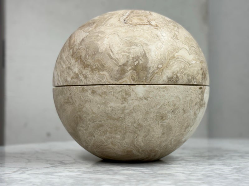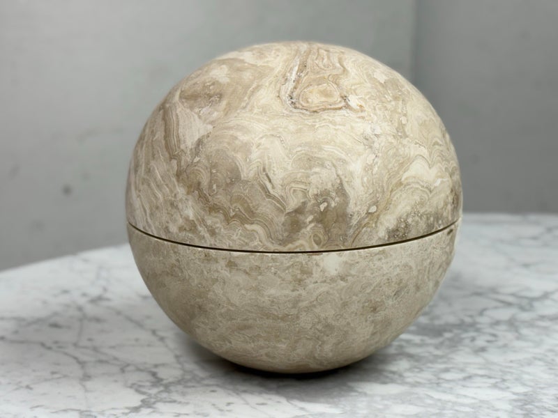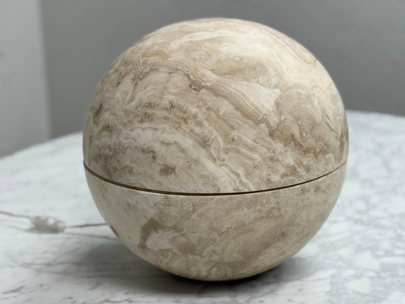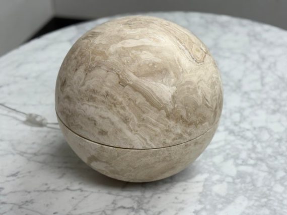 Design Plus Gallery presents an Onyx Sphere Globe. Crafted from Onyx the natural finish enhances the beauty of the stone allowing its inherent characteristics to shine through from the intricate veining to the rich, earthy tones. Is in good condition with minimal wear for its usage.