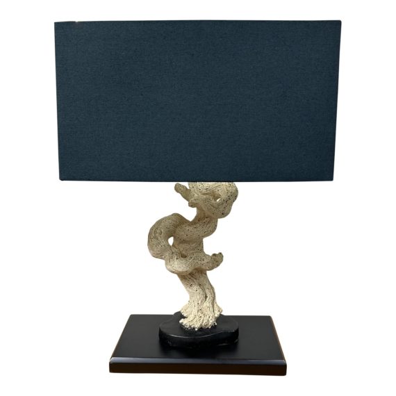 Design Plus Gallery presents a Table Lamp. A a touch of rustic charm to any space with its cast drift wood base in a distressed finish. The organic form of the drift wood cast creates a unique and natural look. The lamp is further enhanced by a black finish double base that complements the drift wood perfectly. The lamp is topped off with a sleek black square shade that adds a modern touch to the overall design. This lamp is not only a functional lighting fixture but also a beautiful piece of decor that will add character to any room. In good condition, with minimal wear from usage + age.