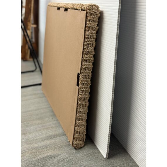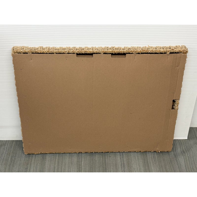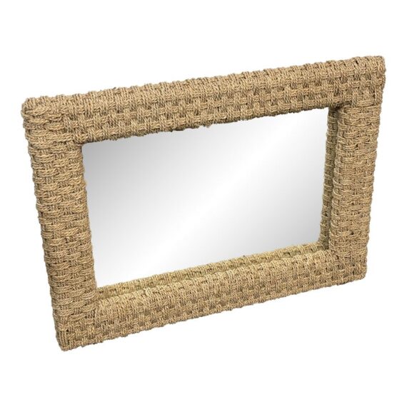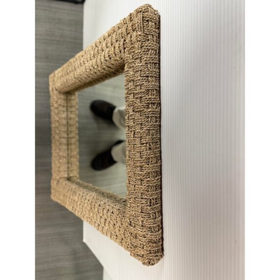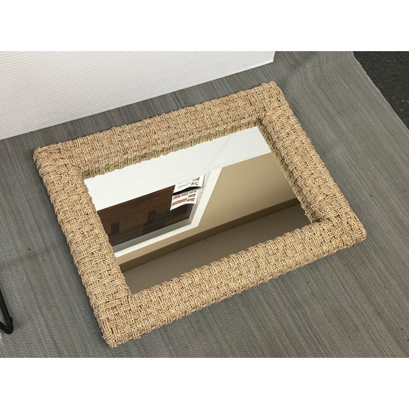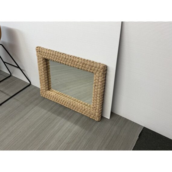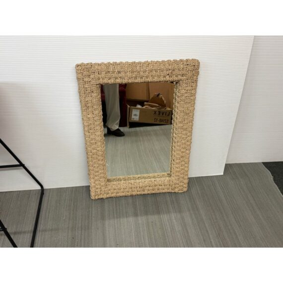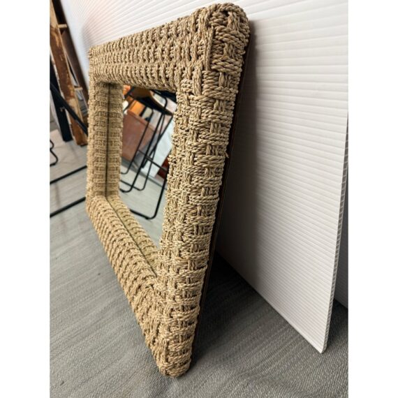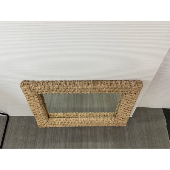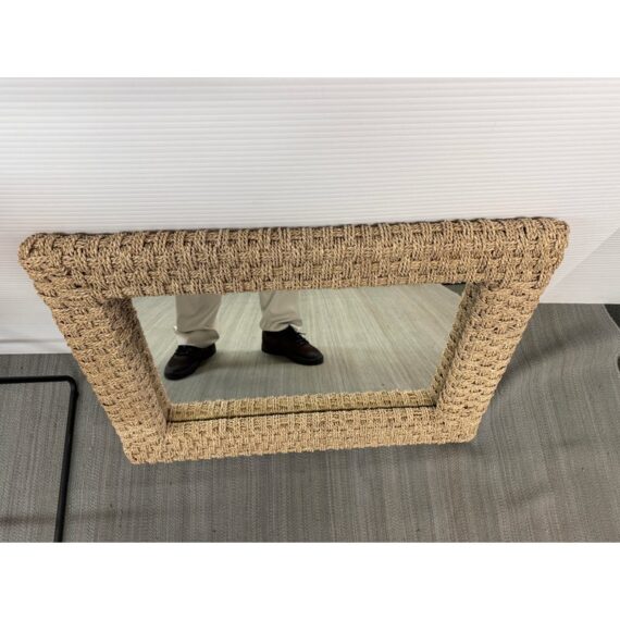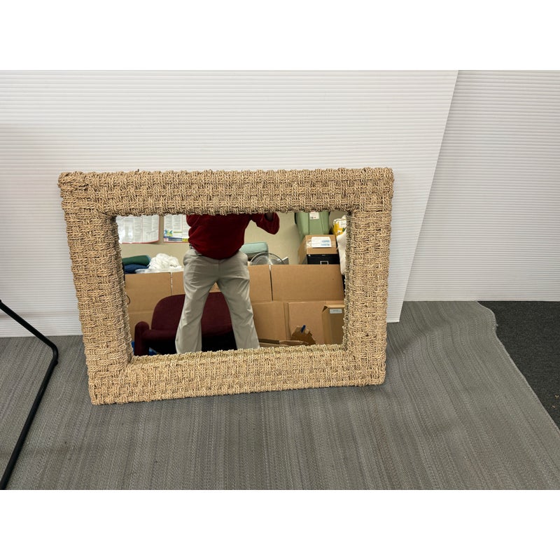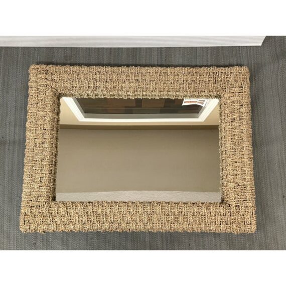 Design Plus Gallery presents a Wicker Woven Wall Mirror in a Neutral Natural Tone. The frame is wide and takes a strong presence for your wall. It has sharp angles, uniform shape and the ability to hang vertically or horizontally. The mirror is in good overall condition with minimal signs of visible wear.