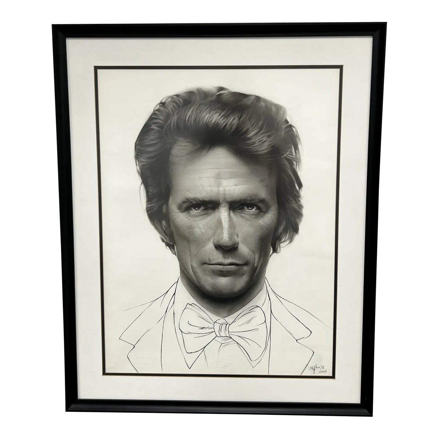 Original Artwork Black + White Charcoal Drawing of Clint Eastwood, Signed + Dated 2007