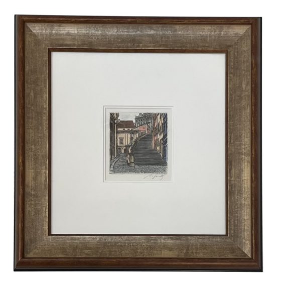 Original Etching Prague Hand-Colored
