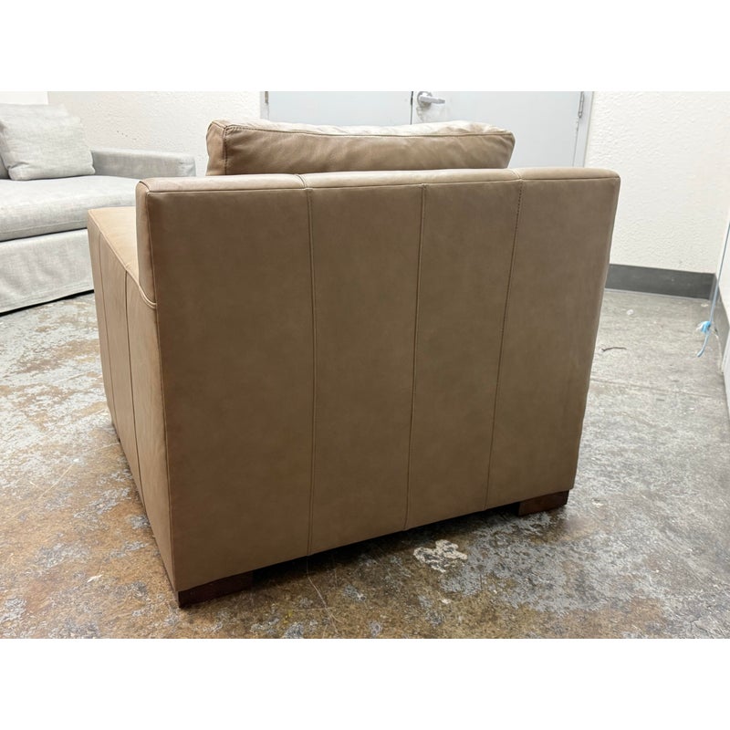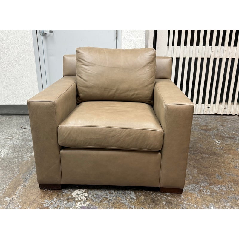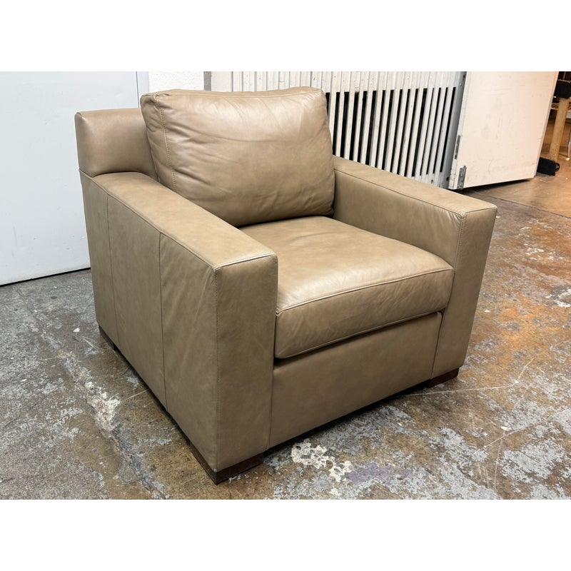 Design Plus Gallery presents the Keene Lounge Chair from Origins by Stickley. The Keene makes a dramatic architectural statement for your home with wide track arms and low profile block feet. Is in good showroom sample condition with minimal wear for its usage. From the San Francisco Design Center. Made in the USA.