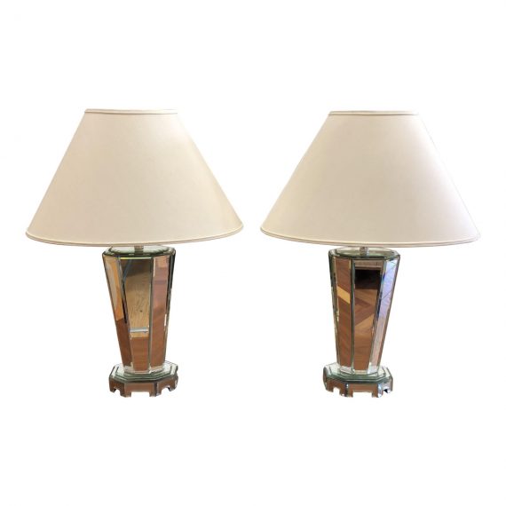 Pair of Art Deco French Mirrored Table Lamps. Original Price: $3,000