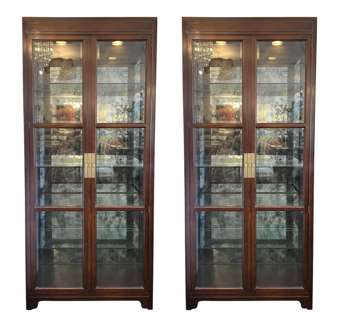 Pair of Baker Furniture Voltaire Lighted Display Cabinets