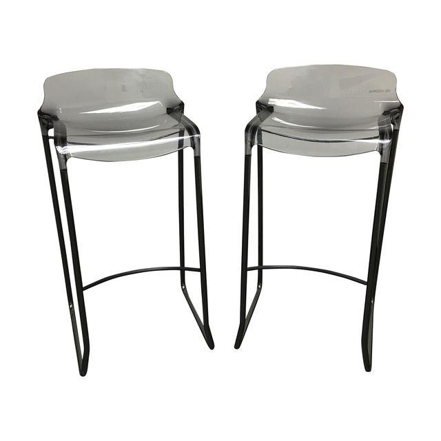 A pair of Casprini Tiffany Sgabello barstools. These barstools are to adore. The seats are a transparent polycarbonate. The metal frame structure is in a black nickel. These modern stools are a must have. Made in Italy.