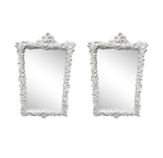 Design Plus Gallery presents a Klemm Mirrors by Oly Studio. A cast resin frame in a frost white finish. An organic design with polished edges. An Oly brass plate is in the back. Ready to hang.