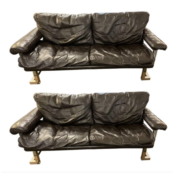 Pair of Pfieff & Co. Uk Mandarin Leather Two Seater Sofs