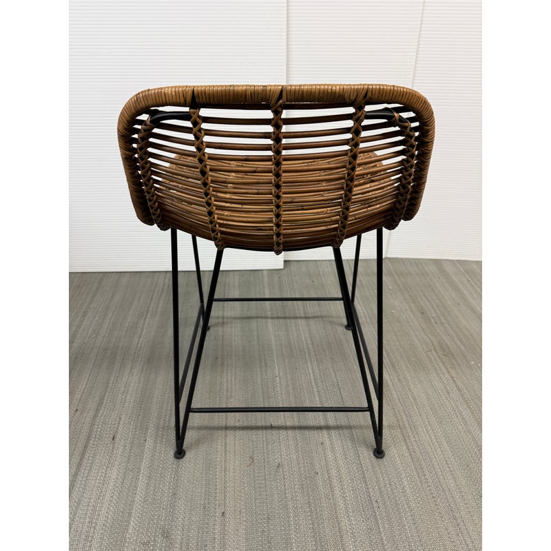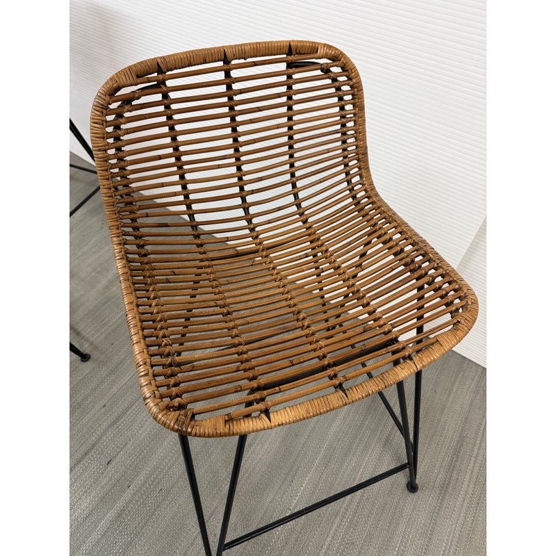 Design Plus Gallery presents a Set of Three Hermosa Counter Stools from Palecek. These bars stools have a black aluminum frame that is hand wrapped in a natural brown synthetic with that offers maximum UV protection, making these stools suitable for the outdoors. They are all in good condition with wear that is consistent with their usage.