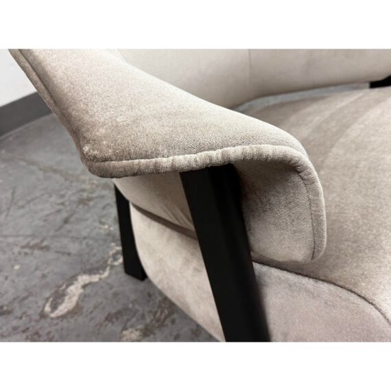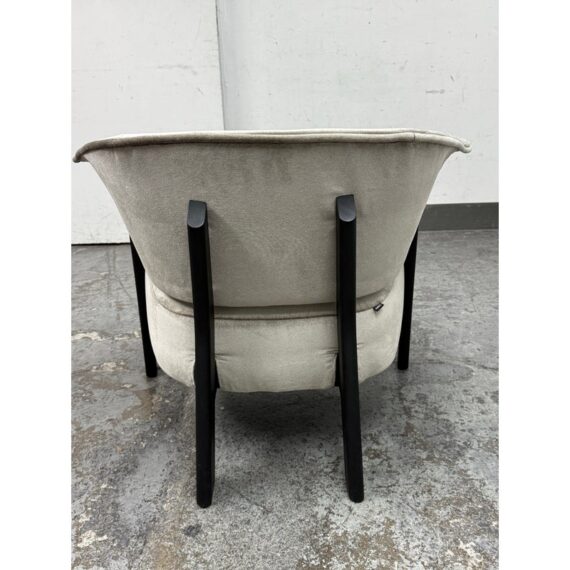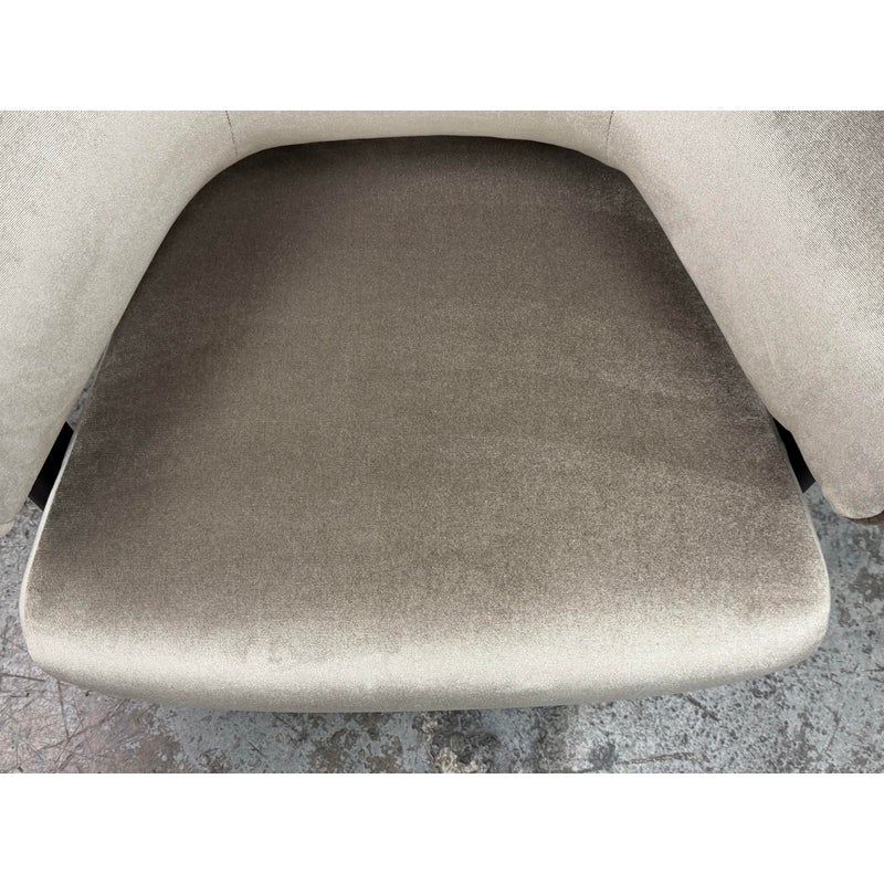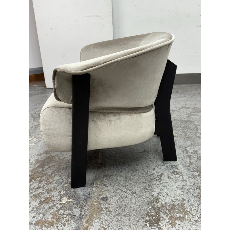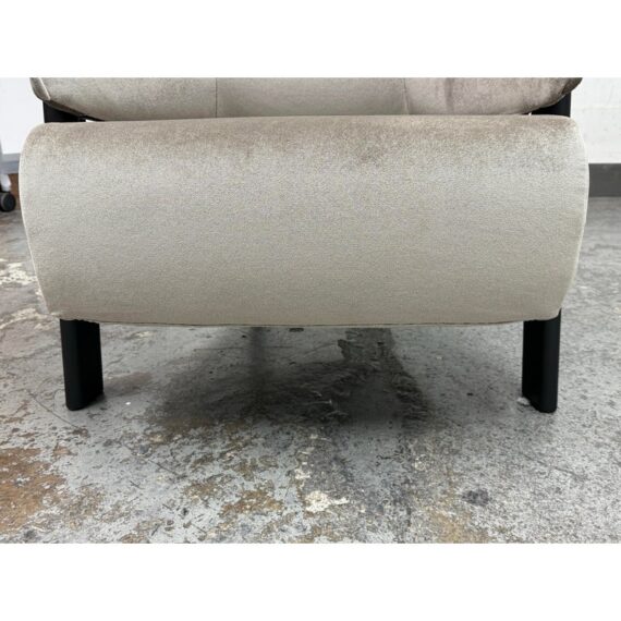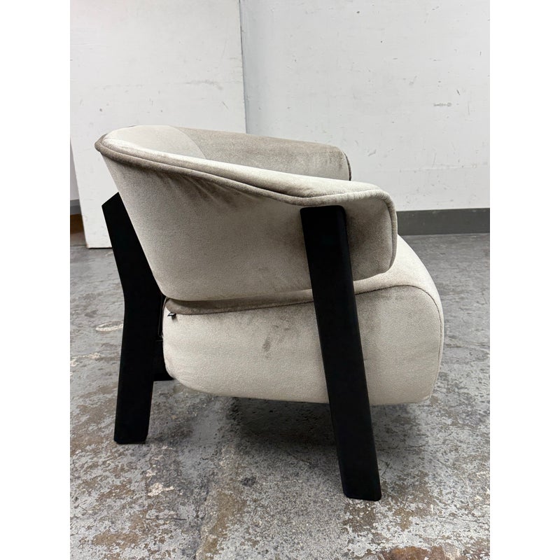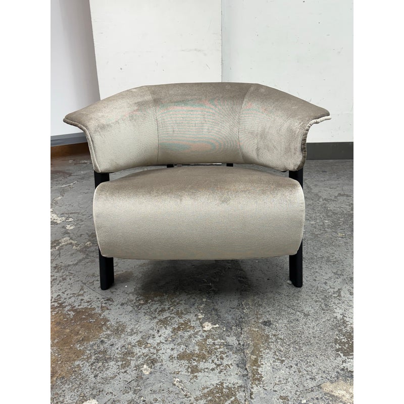Design Plus Gallery presents a Back-Wing Lounge Chair from Cassina. Designed by Patricia Urquiola. Embodies sculptural comfort and refined craftsmanship. Its solid-wood frame showcases Cassina’s renowned joinery, while the ergonomic, wrap-around backrest folds into gentle “wings” that double as armrests, inviting a naturally relaxed posture. The contrast between the substantial timber structure and the plush, padded seat creates a welcoming silhouette that feels both contemporary and timeless. Upholstered in a luxurious silver-grey velvet and set on black-finished legs, the Back-Wing balances tactile richness with graphic clarity—equally at home in living rooms, reading corners, and refined hospitality spaces. Was a Showroom Sample, In good condition, minimal wear. Made in Italy.