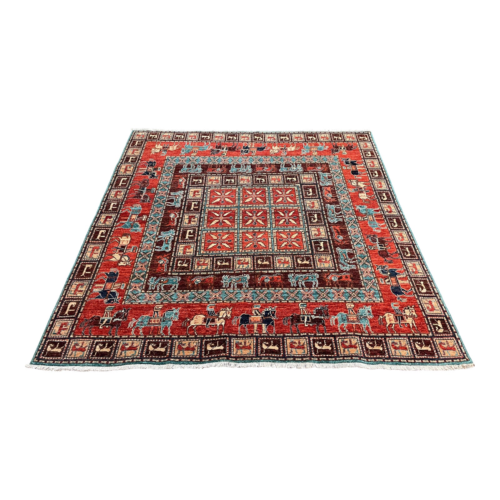 Pazryk-Soumak Handknotted Area Rug, India – 6′ × 6′. Original Price: $2,000