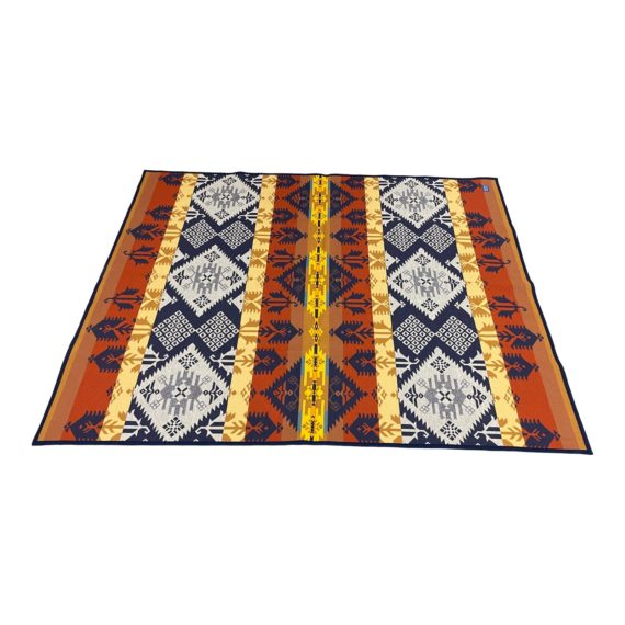 Design Plus Gallery presents a Pendleton Woolen Mills Beaver State Throw. Pendleton has created Robes and Shawls since 1863. Woven from the high quality of wools. A double sided design. Original purchased in Yosemite, California. Made in the United States.