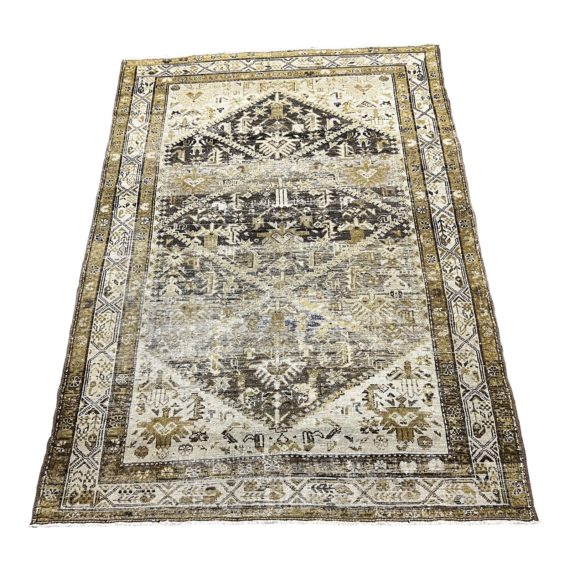 Design Plus Gallery presents a 6ft 3in X 4ft 3in Persian Malayer Area Rug Brown/Cream. The rug consist of browns, grays, cream and olive colors.