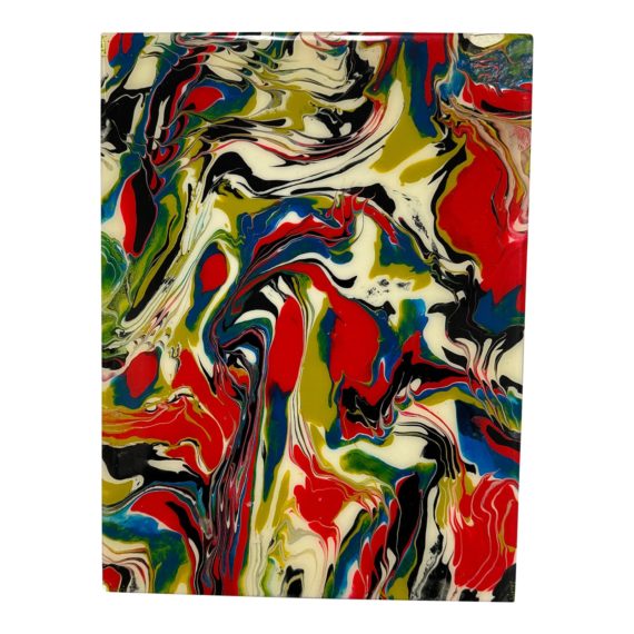 Design Plus Gallery presents an Original Artwork by Artist Peter Lioti. A wood paneled frame with high gloss painted. Layered with vibrant colors of White, Black, Red, Blue, Gray and Yellow. Can hung vertical or Horizontal. Is in good condition.
