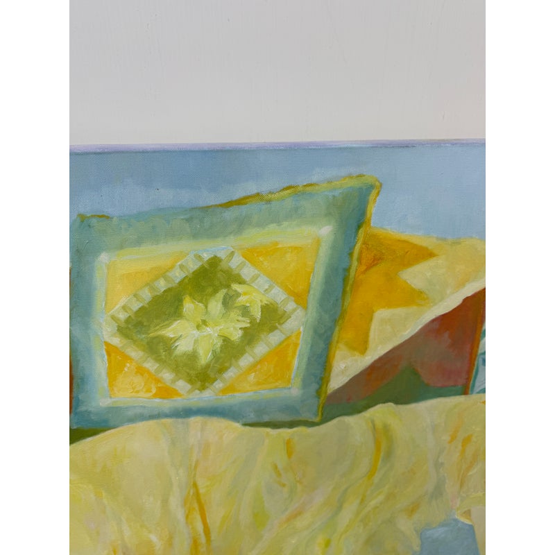 Design Plus Gallery presents an Original Figural Painting by Philip Dizick. The piece depicts a reclining model in a soft, impressionistic style. Exploring depth of color and subtle movement in a large format, gallery wrapped painting. Good condition.