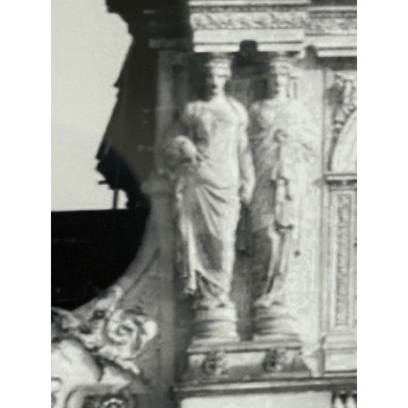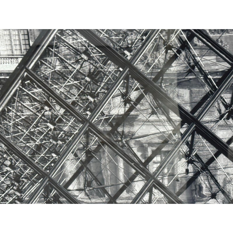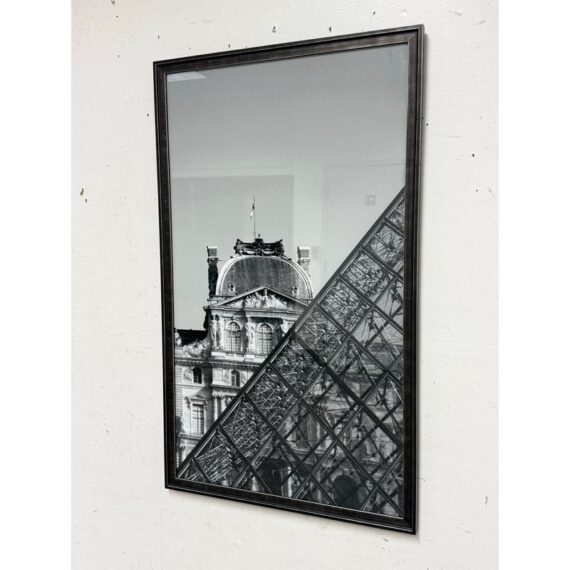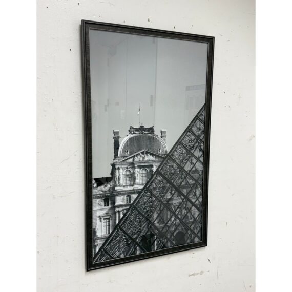 Design Plus Gallery presents a Framed Print of the Lourve + its Pyramid by Philippe Hugonnard The iconic backdrop is a close up showcasing the two structures and how different their perspective is. Philippe Hugonnard is a French photographer, born in Geneva, Switzerland. He creates unique photos and works of art by mixing multiple types of digital media. His photos establish a link between urban reality and that imagined by him. The print is encased in a thin black frame and is in good condition for its usage.