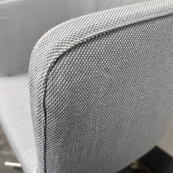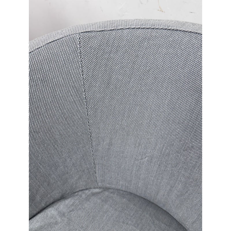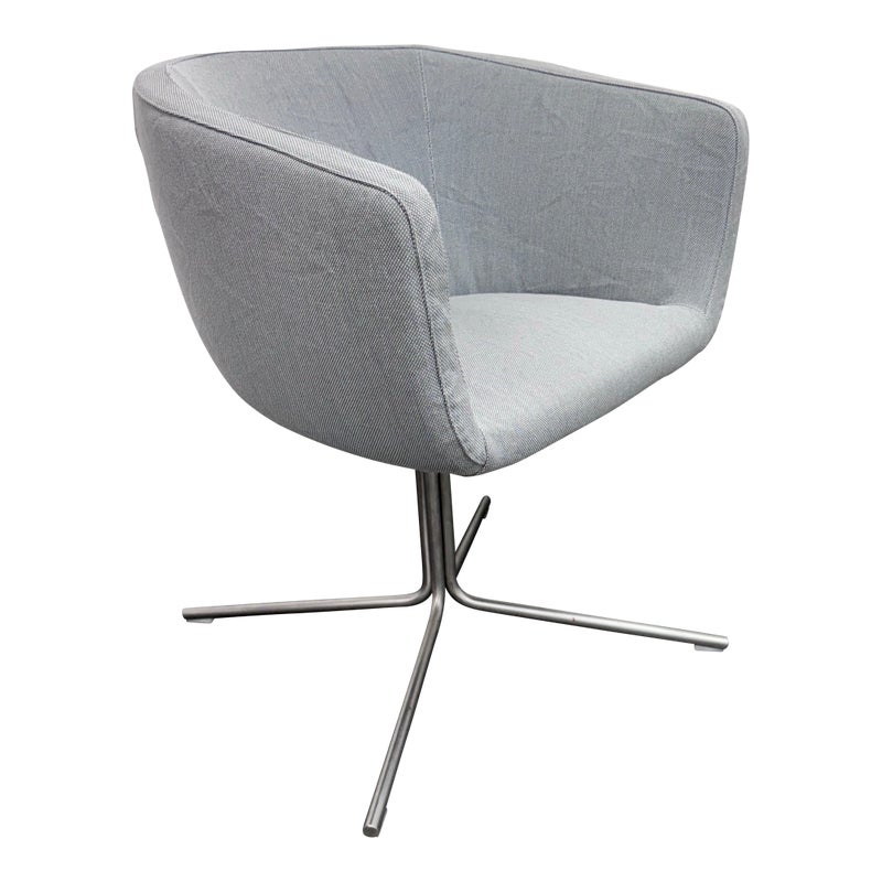 Design Plus Gallery presents a Mini Jelly Chair by Living Divani Designed by a Piero Lissoni in 2013. A small armchair with one-piece frame with steel insert and flexible, cold-expanded polyurethane foam padding and seat padded with polyurethane foam. Covering in needle punched, resinated, non-woven polyester fibre, bonded onto a polyamide velveeten backing. Swiveling base in shiny chromed finish steel. The fabric is a slipcover. The chair has visible and minor wear that is consistent with usage. Made in Italy.