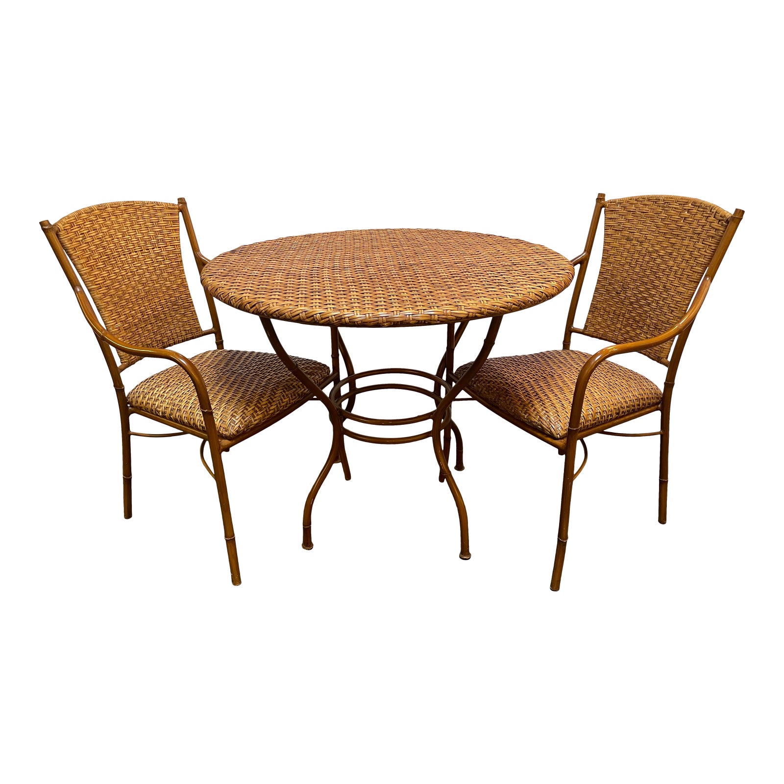 Pierre Deux Woven Wicker Bistro Table + Pair of Chairs Set