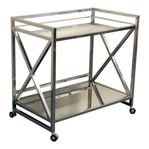 Plantation Home Bateman Chrome + Mirror Bar Cart. Original Price: $1,325