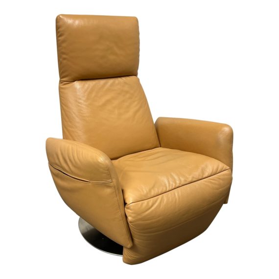 Poltrona Frau Camel Colored Leather Swivel Manual Recliner. Original Price: $7,210