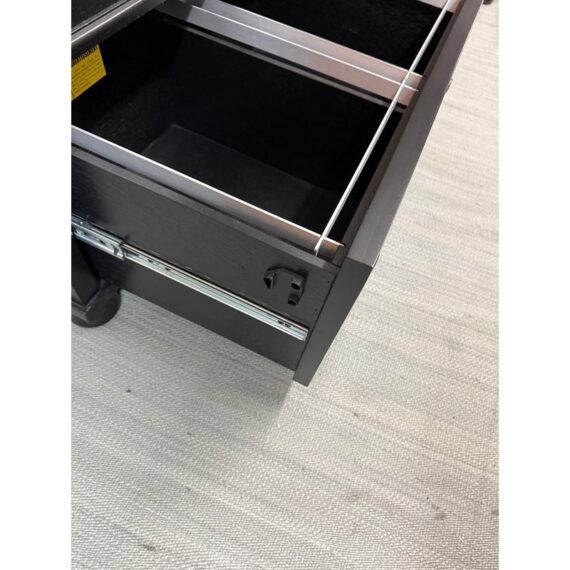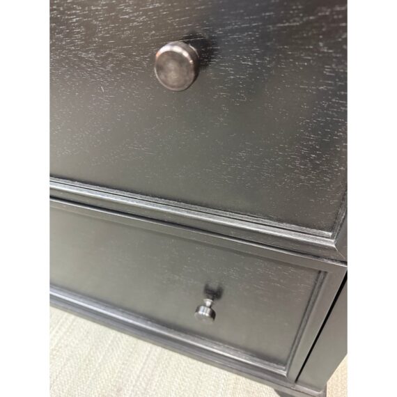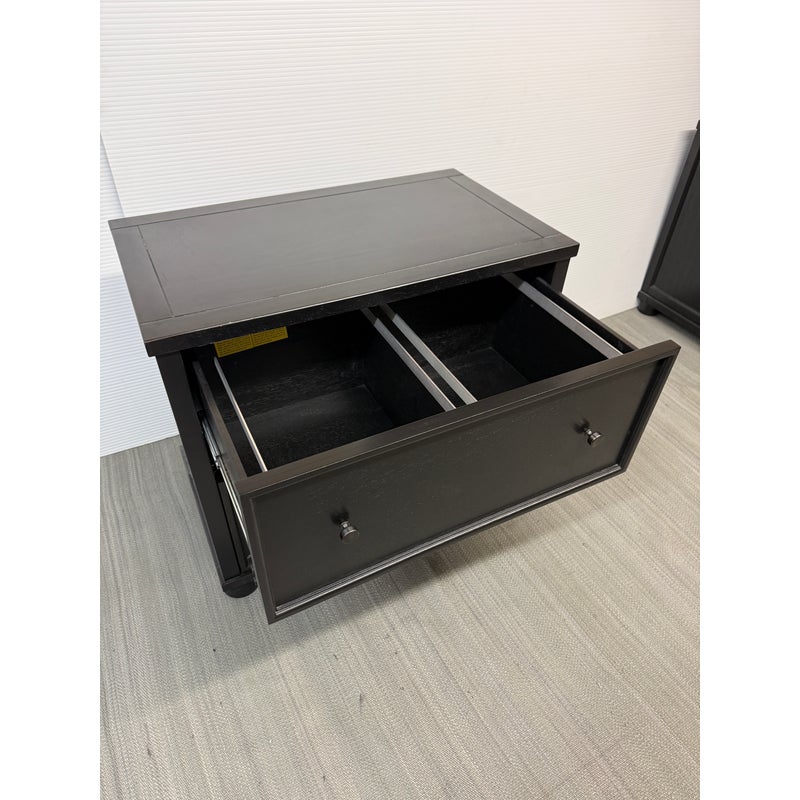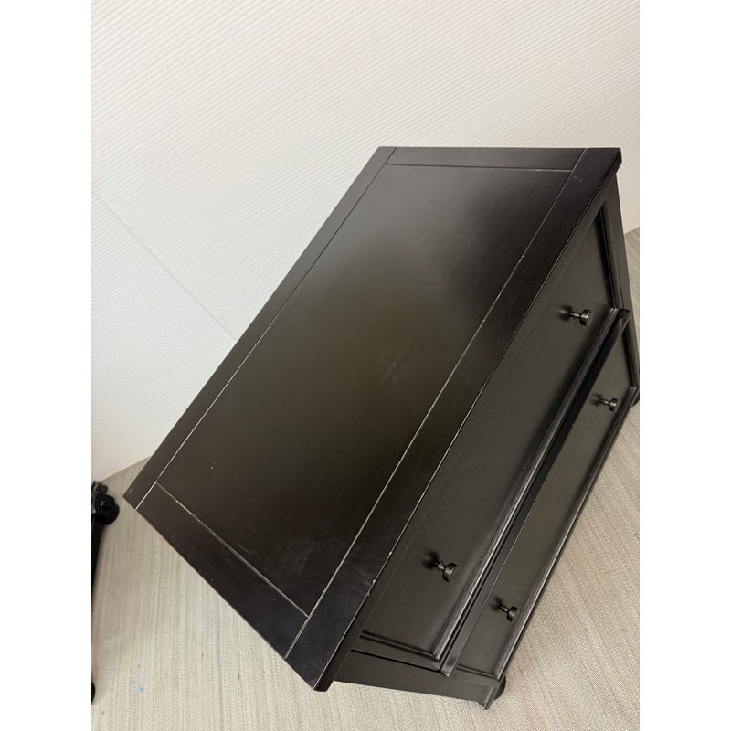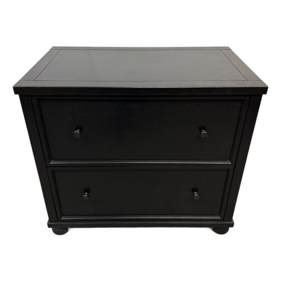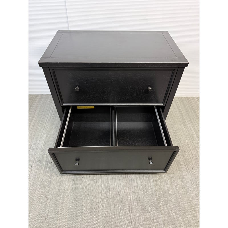 Design Plus Gallery presents a Aris Lateral File Cabinet from Pottery Barn. Crafted from woods and veneers in a black finish. Features two drawers with file hardware. This is a discontinued model with the brand. In good condition, visible and minimal wear from usage. Made in Malaysia.
