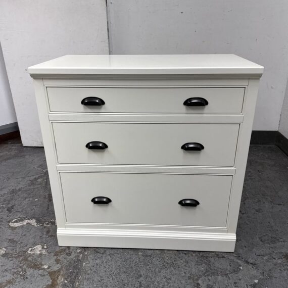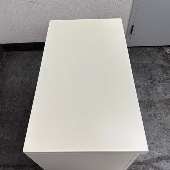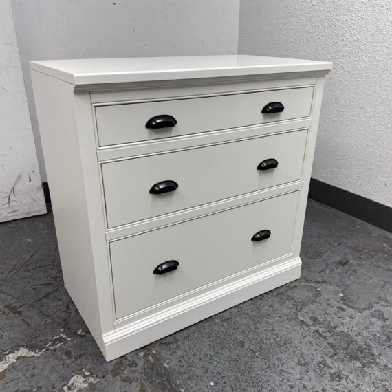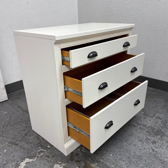 Design Plus Gallery presents the Audrey File Cabinet from Pottery Barn. This sweet little filing cabinet is made wood solid and has a dutch white finish on all sides. Three drawers give this cabinet a needed refresh with its top shallow drawer, lowest file cabinet for upright paper storing and middle drawer for exactly everything in between. Constructed in a clean, contemporary style that will dress up your office painlessly. Is in good condition with minimal wear for its usage.