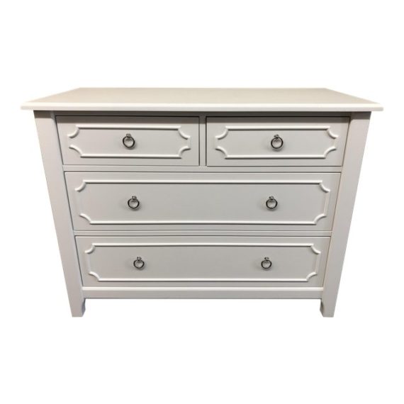 Design Gallery presents the Ava Regency Dresser by Pottery Barn. Designed with signature moldings, scalloped feet and a classic, multistep finish for extra durability. Constructed of poplar wood and has poplar edge banding and MDF for strength, using mortise-and-tenon joinery. Four roomy drawers for storage.