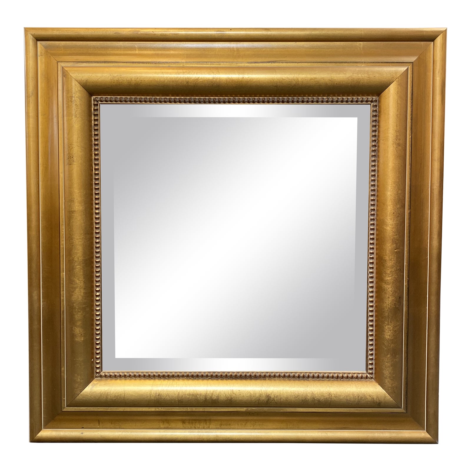 Design Plus Gallery presents a Pottery Barn Gold Leaf Square Mirror. Traditional bead molding lines the interior of the substantially layered frame. Gold leaf has a red undertone. Interior edge of mirror is bevelled as well. Minor wear on surfaces.
