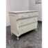 Design Plus Gallery presents the Genevieve Dresser from Pottery Barn Kids. The dresser is in an antique white painted finish that blends so well in children’s rooms. There is a top segment of drawers that are all equal and take up a third width each for compartmentalized storing of small and regularly necessary items. The lower two drawers are full width for folding and arranging. A great dresser to teach your little ones to organize their rooms. The item is in good condition, visible and minimal wear from usage. Made in Indonesia.