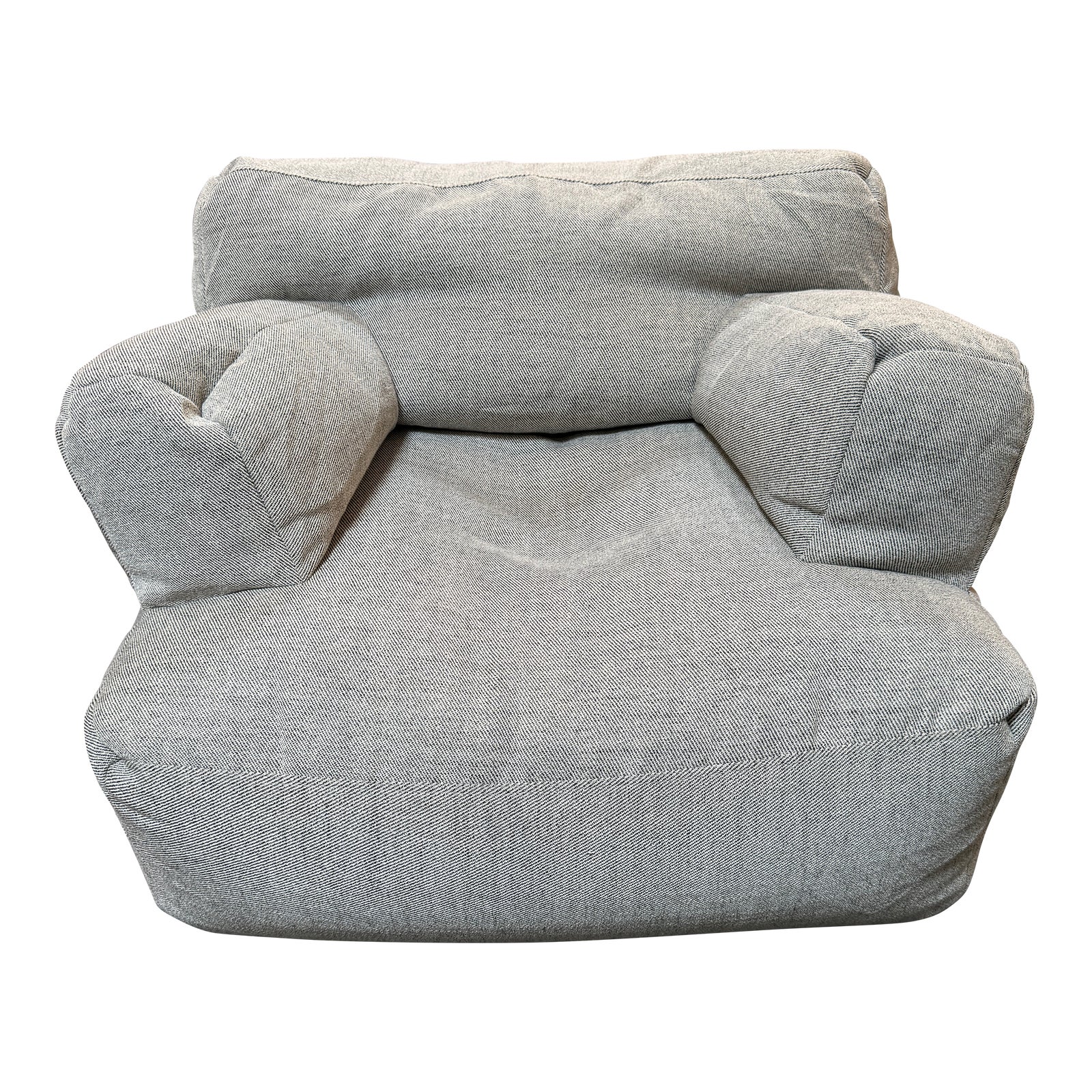 Design Plus Gallery presents an Eco Lounger by Pottery Barn. Classic arm chair style is updated with loosely packed recyclable filling for a beanbag chair vibe that is comfortable and casual. Cozy armrests and backrest give you plenty of support while you sit and study or game. Slipcovered for ease of cleaning or change. Light surface wear; condition is consistent with age and use.