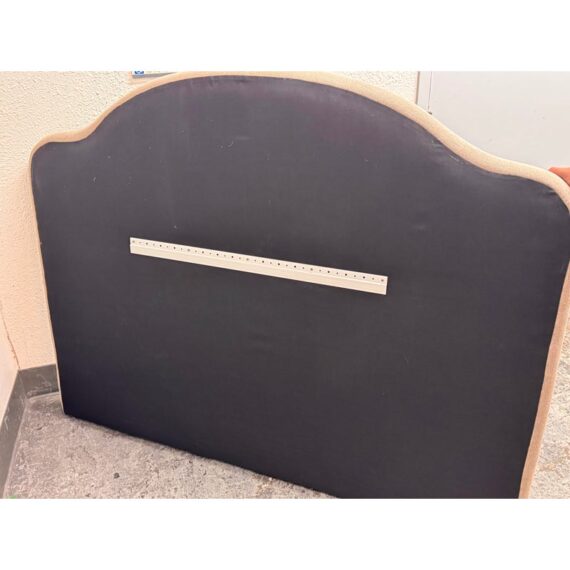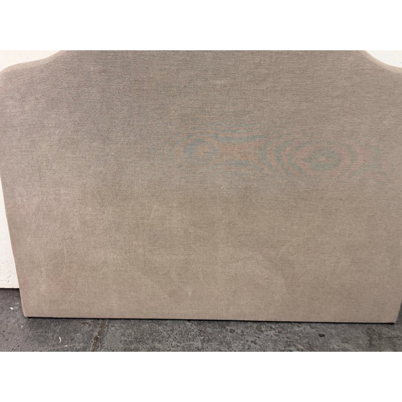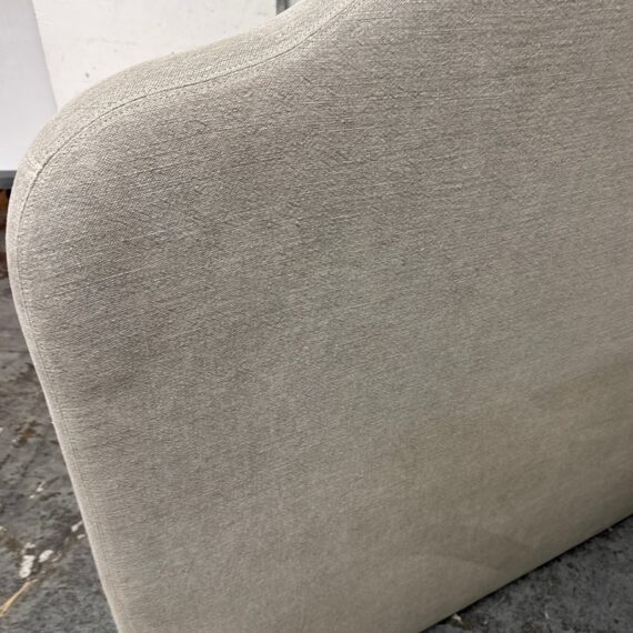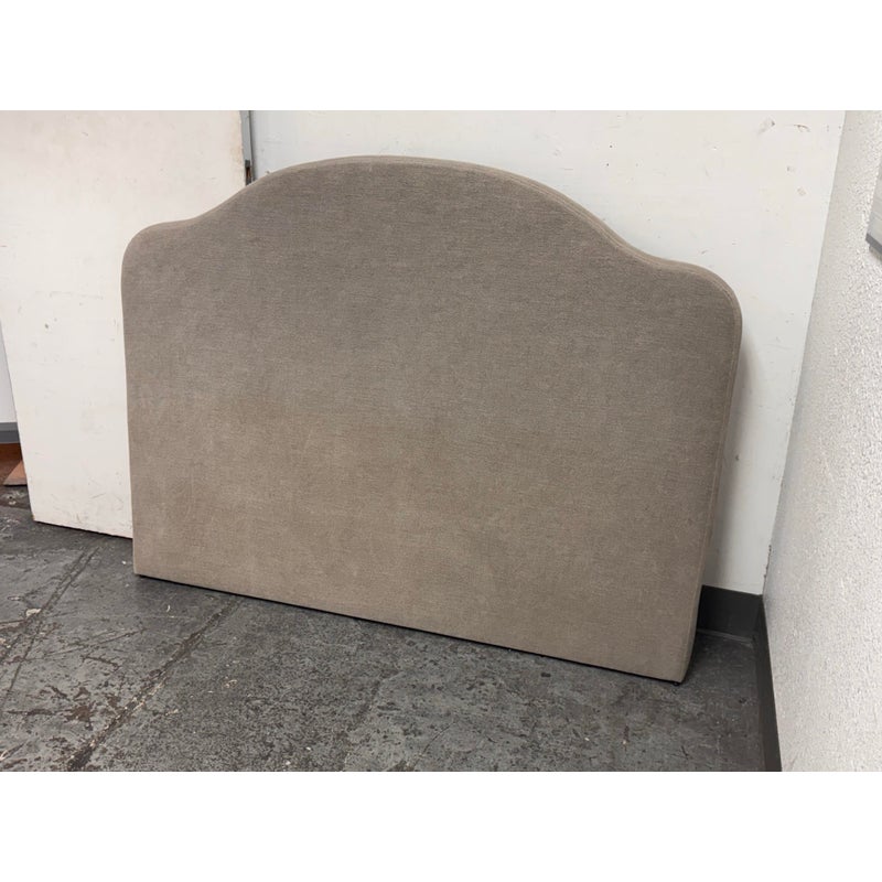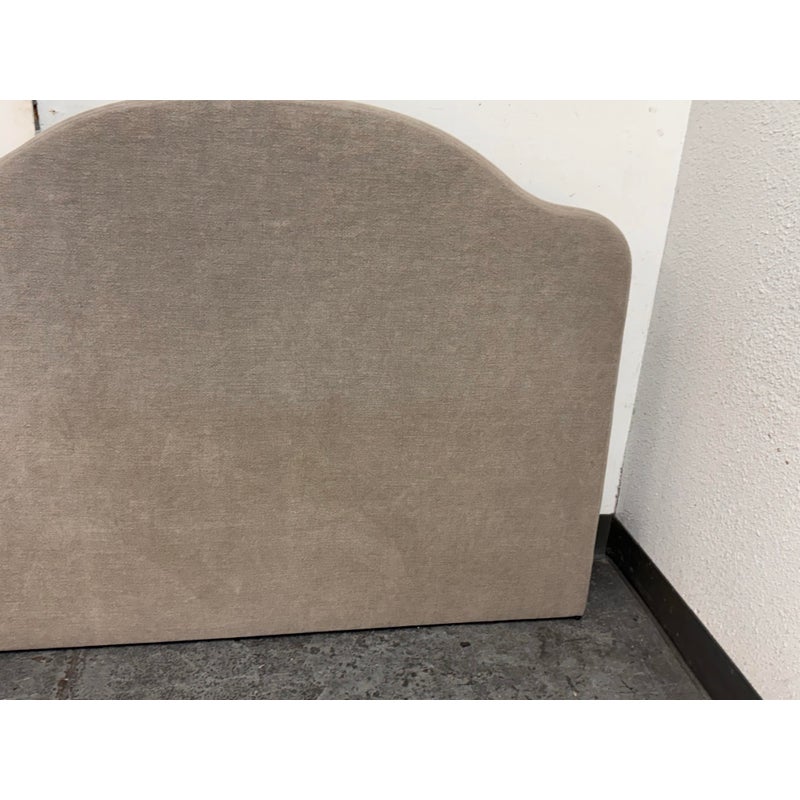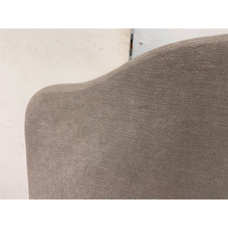 Design Plus Gallery presents a Queen Size Custom Design Sage Linen Headboard from Amber Interiors. The headboard is offering a tailored presence with a softly contoured silhouette that adds architectural interest to the bedroom. Upholstered in sage-toned linen, the headboard brings a calm, neutral palette that pairs easily with a range of bedding styles, from contemporary to transitional interiors. The gently arched top provides visual depth while maintaining a clean, understated profile. Designed for versatility, this headboard is intended to be wall mounted and includes a cleat on the back for secure installation. Headboard only; bed frame not included. In good condition, visible and minimal wear from usage.