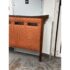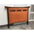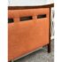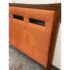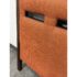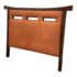 Design Plus Gallery presents a Custom Design Walnut + Upholstered Custom Queen Size Headboard. This custom piece has asian influence with the shape of its frame that is hand carved. The walnut has a padded woven upholstery in the Terra Cotta tone which blends well with many styles. It is able to be wall mounted. Is in good condition with some visible wear present that is consistent with usage. Headboard only.
