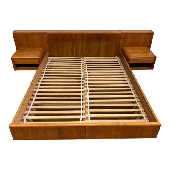 Queen Size Mid 20th Century Storage Teak Bed Frame + Nightstands