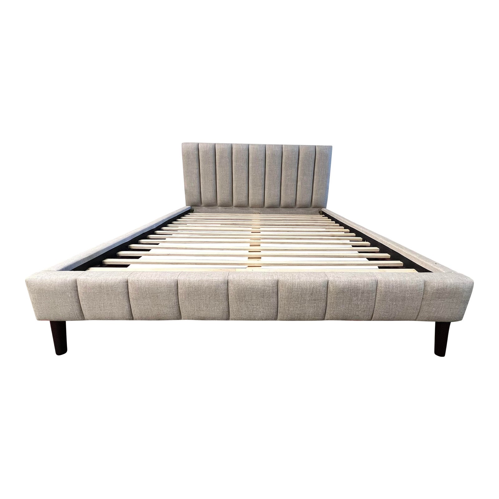 Queen Size Saatva Valencia Light Grey Linen Bed Frame. Original Price: $1,695