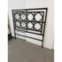 Design Plus Gallery presents a Queen Silva Headboard from Safavieh. The style gives reference to Italian antiques with a quatrefoil design that will give off a graphic design element in your space. Antiqued iron finish is bold against any backdrop. Height is adjustable. Condition is good for age and use.