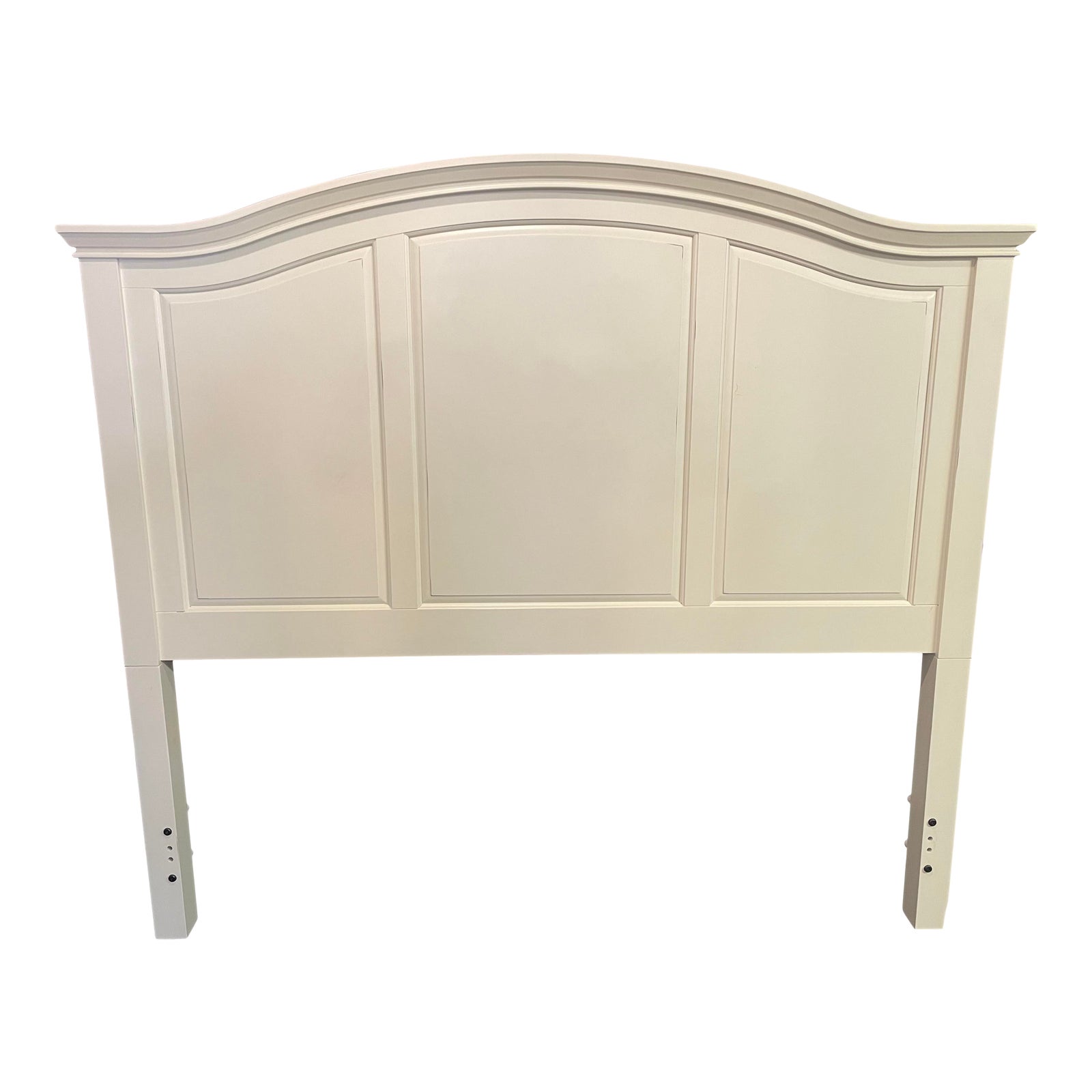 Design Plus Gallery presents a Queen Size Traditional Headboard. Combining clean lines and a traditional camelback design, this shallow headboard will fill the smallest of bedrooms with cottage or coastal charm. Crisp rubbed white finish. Easily affixed to metal bed frame (not included).