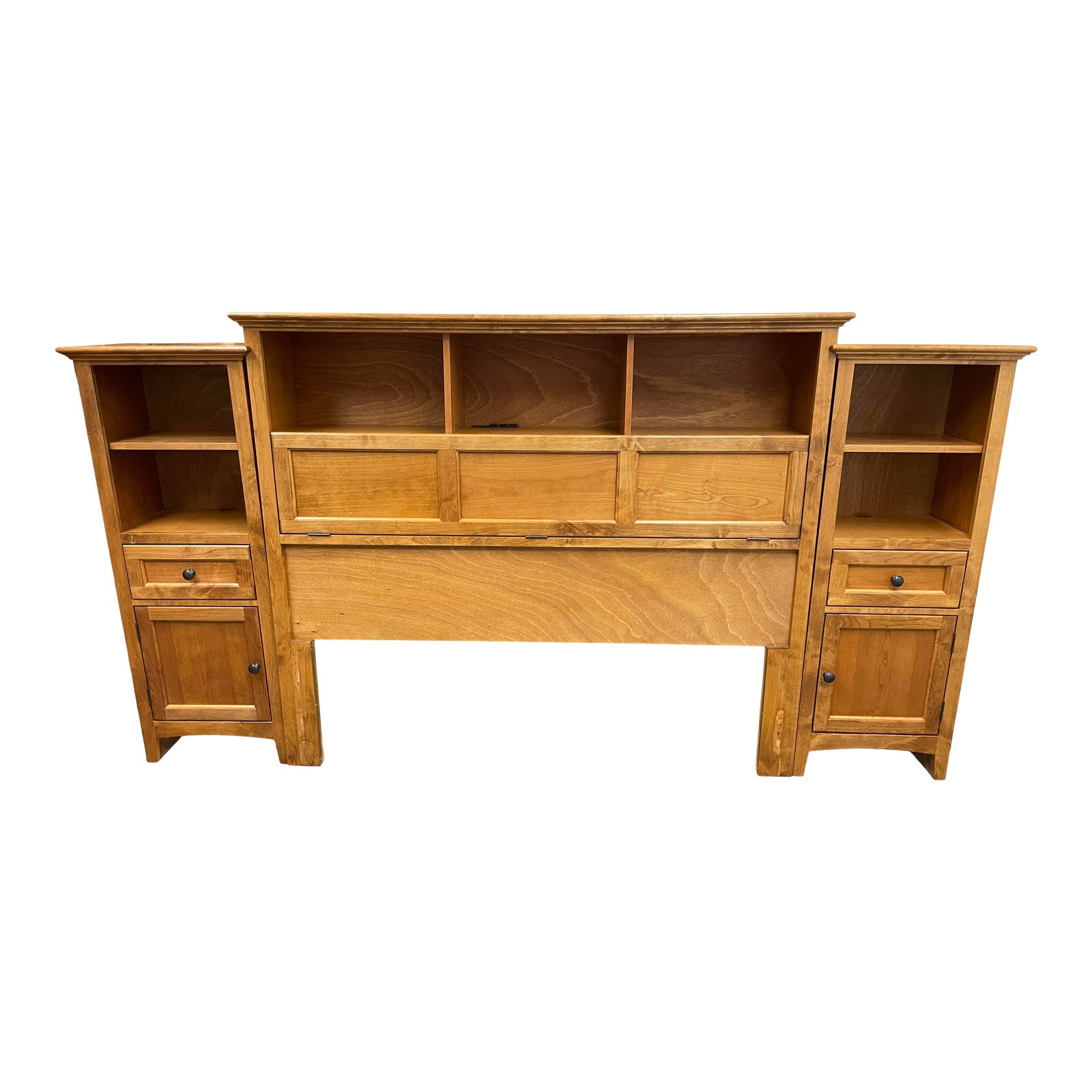 Queen Size Whittier Wood Furniture McKenzie Storage Headboard + Side Tables. Original Price: $2,100