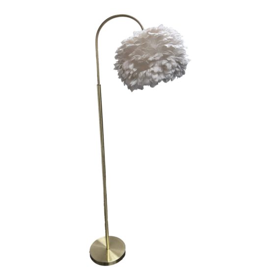 Design Plus Gallery presents a Floor Lamp of the Hollywood Glam by Rachael Zoe. There is a fluffy cream colored light shade attached to the brass stand, making this a standout feathered piece. Great for a multiple of reasons.