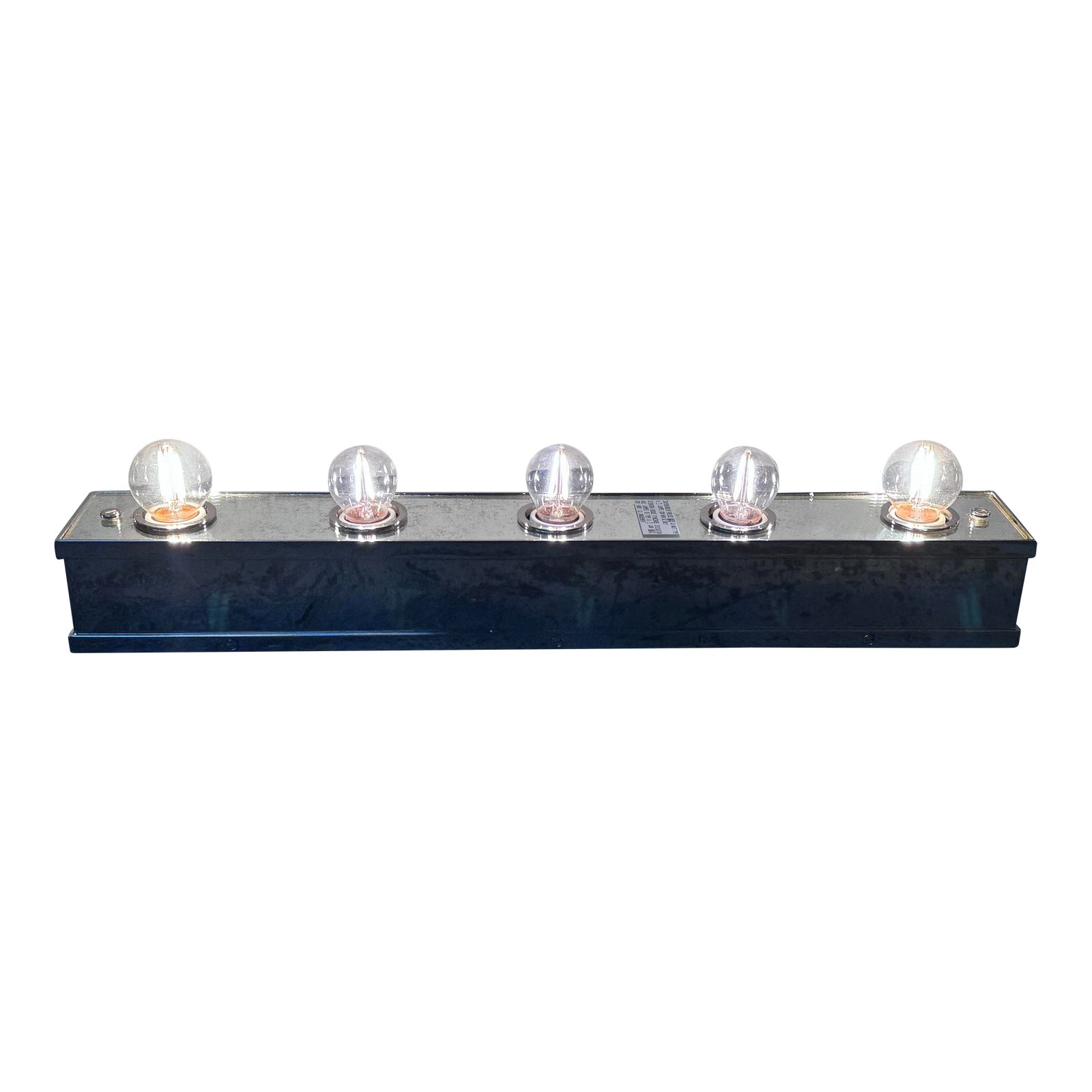 Design Plus Gallery presents a High Class Chrome Bathroom Light from Ralph Lauren. This chrome fixture is minimalistic and clean. Would do best above a mirror in the bathroom but can easily be placed anywhere that a simple light is needed. Able to hang vertically or horizontally. Houses five bulbs to light up your vanity. Is in good condition with minimal wear.