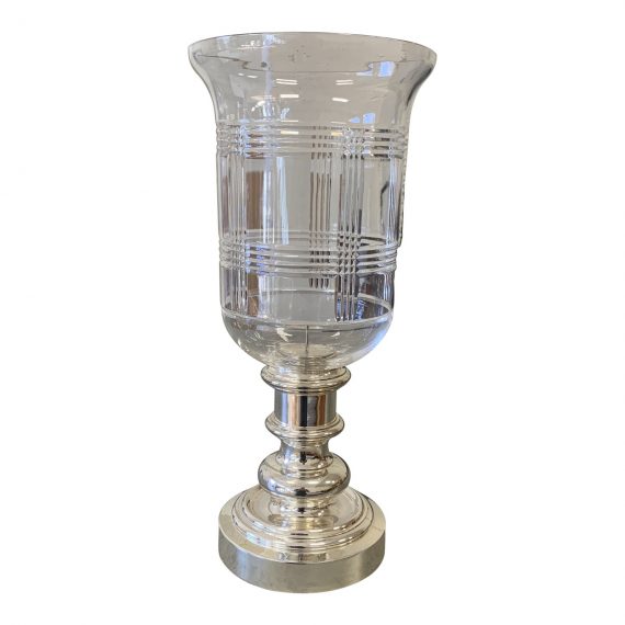 Design Plus Gallery presents a Glen Plaid Hurricane Lamp by Ralph Lauren Home. Inspired by a vintage lamp, this charming hurricane is crafted from handblown lead crystal and gleaming silver finish. Ralph Lauren label on bottom.