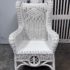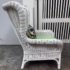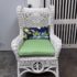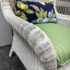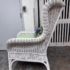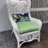 Design Plus Gallery presents a White Woven Wicker Chair from Ralph Lauren Home. Likely of vintage age, this romantic in/outdoor chair gives that Southern Hospitality Shabby Chic feel to it with its feminine details. Comes with accent lumbar pillow and seat cushion in coordinating colors. There are areas of use that are considered consistent with its age + use. No brand label attached.