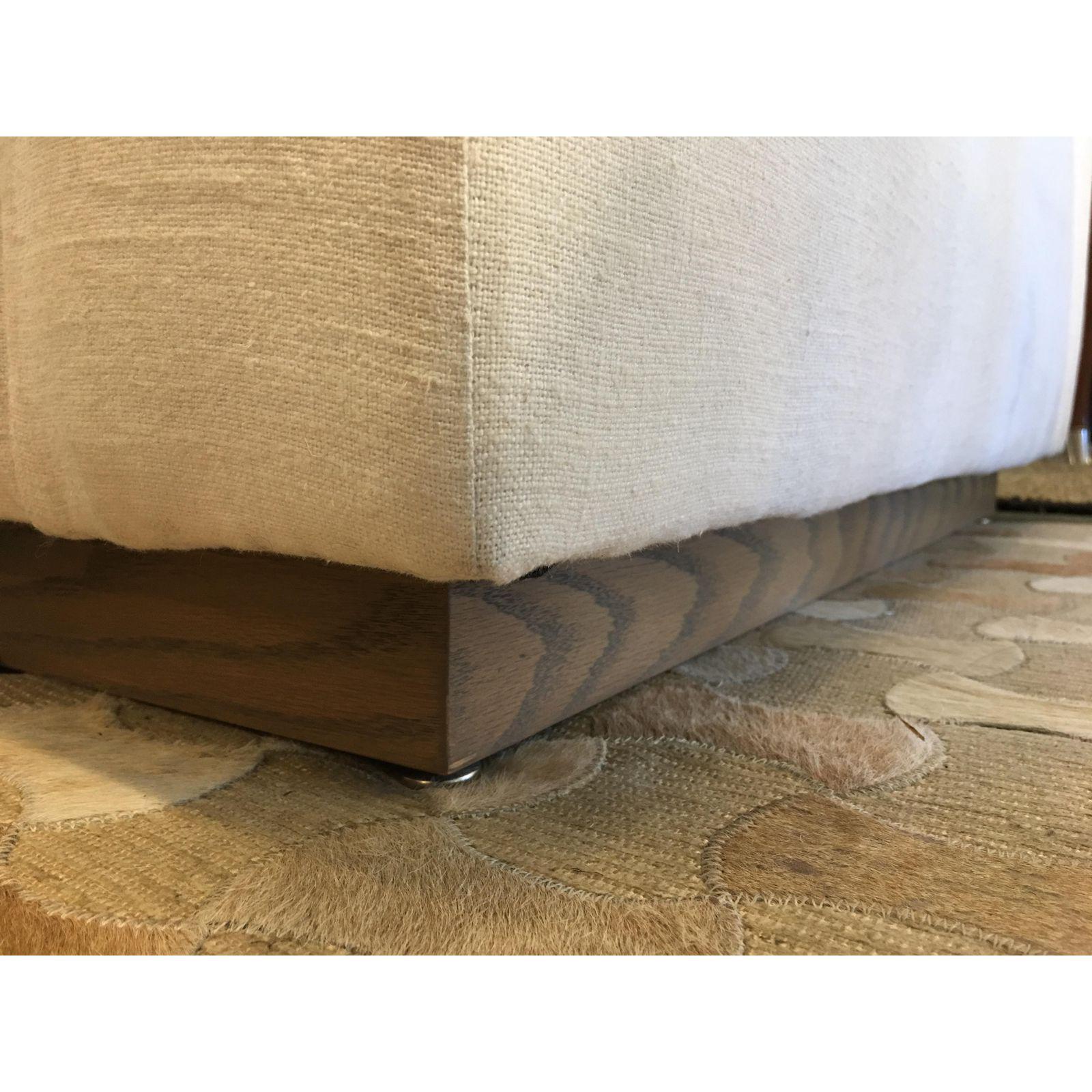 Design Plus Gallery has a Ralph Lauren Sofa. This 90″ sofa is part of the Home Desert Collection. It is upholstered in washable White Linen. It has three back cushions, two sides and one large bench cushion for the seat. All of the cushion covers are removable for laundering. The base upholstery is fixed. This is a sofa you can dive into or curl up on. Quite comfy!
