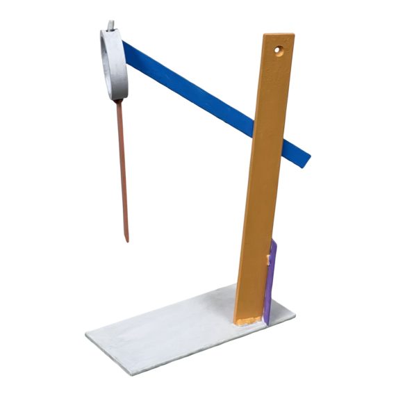 Design Plus Gallery presents a Memphis Design Sculpture in Pastel Tones. The uniqueness of this art piece will spark interest to all who lay eyes on it. Made of solid metal and powder coat in orange purple, and peacock blue you’ll be just as colorfully impressed. In good condition for its age and creation.